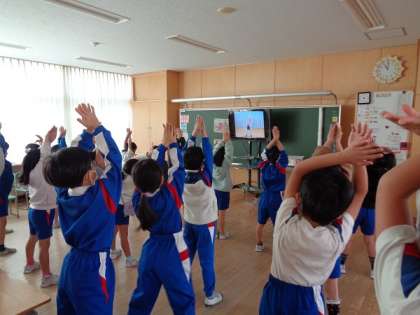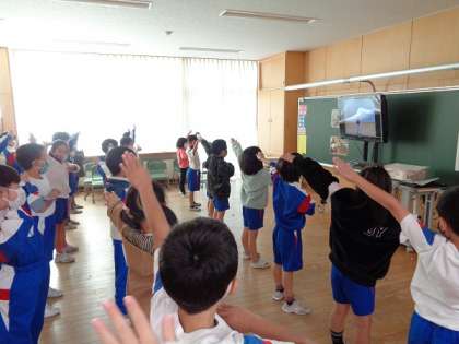 最後は、みんなで楽しく、正しい姿勢を保てる体をつくるダンスをしました。