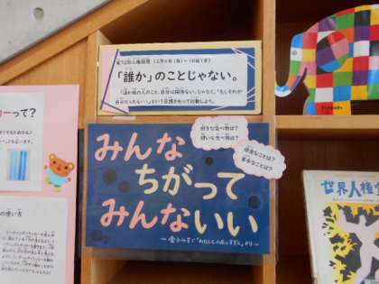 豊田小学校では、図書室に人権週間に向けて、豊田っ子に読んで欲しい本が展示されています。