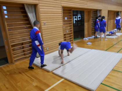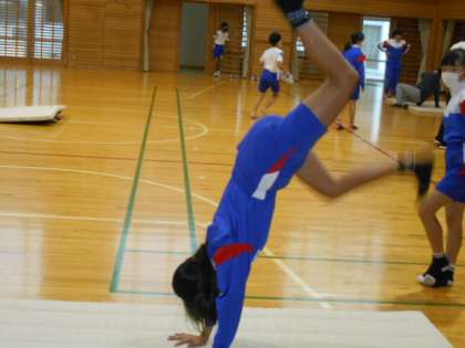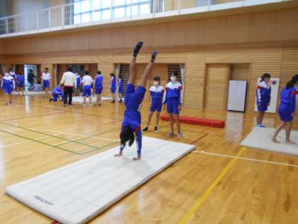 6年生は、マット運動でできる技を増やそうと特訓中。