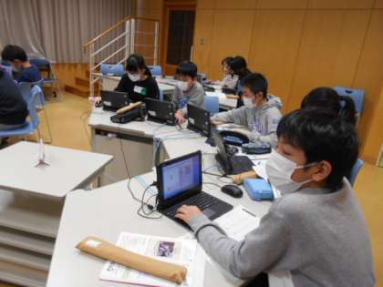 6年生は、プログラミングに挑戦。和音の音で旋律づくりに取り組んでいました。