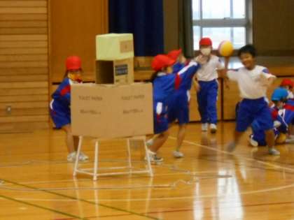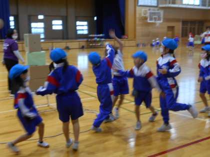アリーナやサブアリーナでは、低学年の子供たちが体育の授業。