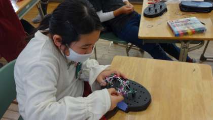 図画工作科「立ち上がれ!ワイヤーアート」の学習の様子です。いろいろな形を試しながら、おもしろい作品になるように作りました。