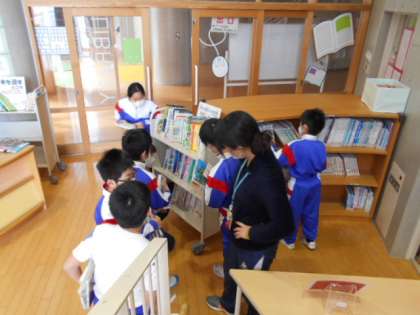 冬休みに読む本を選んでいるのは、4年生。
