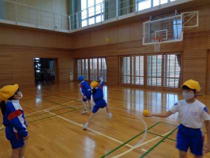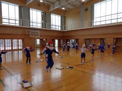 体育の時間「チャレンジわざ7」に取り組みました。縄跳びをしたり、バスケットゴールを目がけてボールを投げたりして、体力つくりに励みました。