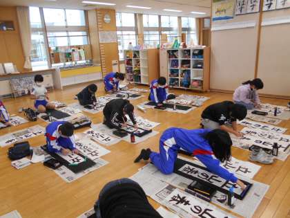 書き初めの練習をしています。4年生は、「立山の春」と書いています。お手本をよく見ながら、中心を意識して丁寧に書く姿が見られます。冬休みにも練習を重ね、本番では、練習の成果が発揮できるよう願っています。