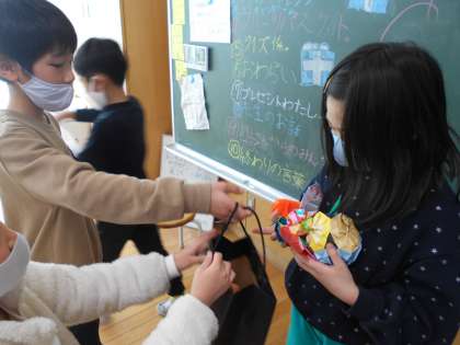 頑張った自分たちへのご褒美に、係で出し物を考えて披露し合うクラス、転校する友達との別れを惜しむクラスとクラスによって様々でしたが、笑顔あふれる楽しい集会となりました。