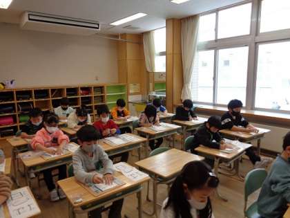 冬休みにたくさん練習した書初、「はつ日」。清書3枚を姿勢を正して、気持ちを落ち着け、最後まで集中して書き上げました。