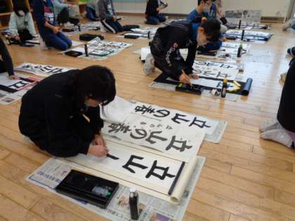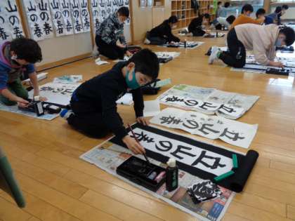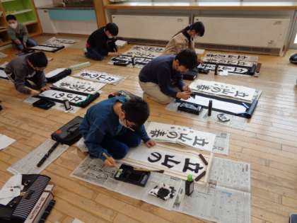 始業式の後は、書き初め大会がありました。冬休みの練習の成果を発揮しようと集中して取り組む姿が見られました。