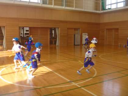 しっぽを取ろうとする友達から逃げたり、しっぽを取ろうと追いかけたりして、ゲームが終わる頃には体がポカポカになっていました。