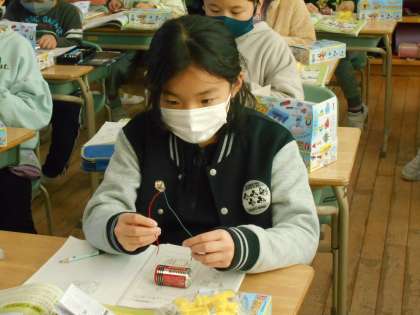 次は、どのようにしたら豆電球の明かりが点いたのか、話合いたいですね。