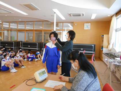 今年度最後の高学年の発育・視力測定を行いました。中には、2学期と比べて身長が5cm以上伸びたり、体重が5Kg程増えたりするなど、発育の著しい児童も見られました。