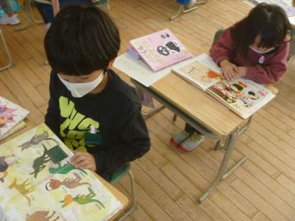 冬休みが明けてから、久しぶりに図書室で本を借りました。どの本にしようか悩んで選んだ本を、楽しみながら読んでいます。様々な本に親しんで、進んで読書してほしいと思います。