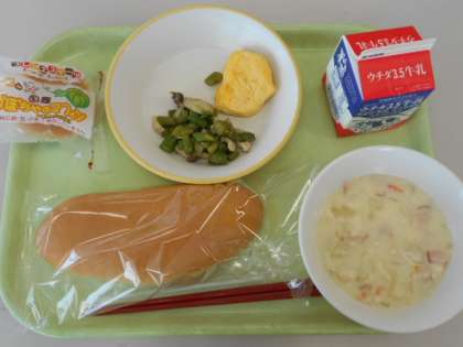 コッペパン・ 森のきのこソテー ・ くりのクリーム煮・ かぼちゃのマフィン ・ 牛乳