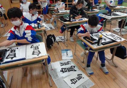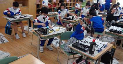 書写「漢字どうしの大きさに気をつけて書こう」では、集中して「白馬」という字を書きました。