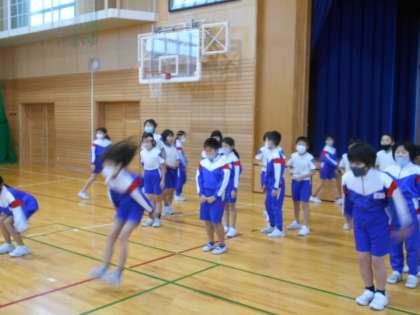 学年でサーキットトレーニングをしました。ダッシュをしたり、立ち幅跳びをしたり、様々なスポーツにいきる運動をしました。