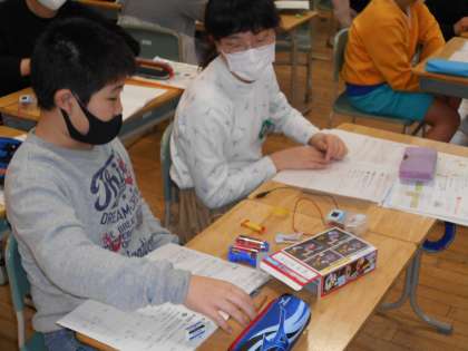 電磁石を強くするための方法を調べました。検流計を使って、電流の大きさが変わることで、電磁石の働きが変わっていることを確かめていました。