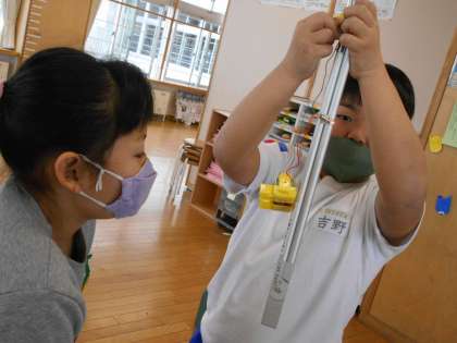 初めに電気を通す物なのかどうか予想を立てて、実際につなげて豆電球に明かりが灯るか確認しました。