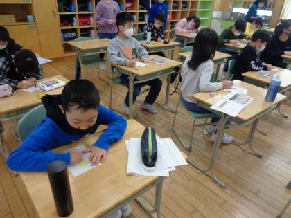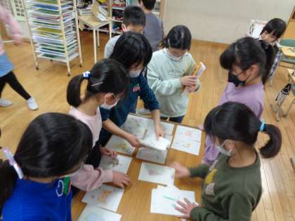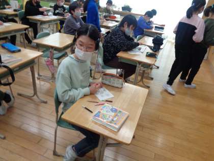 イラスト係が企画した塗り絵を学級で行いました。さくらんぼやアイスなど様々な種類の塗り絵が用意されていて、みんなが楽しめるよう考えられていました。