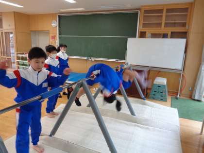 鉄棒にチャレンジしました。逆上がりができるよう何度も取り組みました。