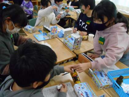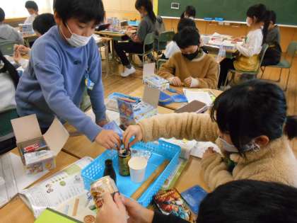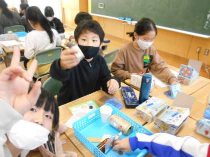 磁石はどんな物にくっつくのか、いろいろな物に磁石を近づける実験を行いました。