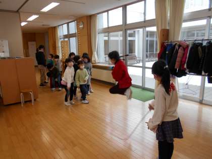 1組は長縄跳びをしました。練習を重ね、2学期よりも速く跳ぶことができるようになってきています。