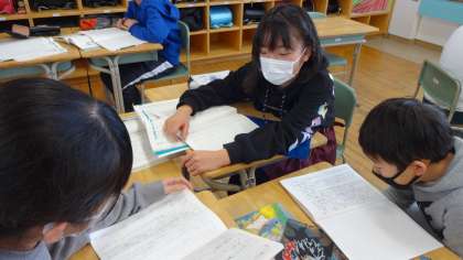 国語科「想像力のスイッチを入れよう」の学習では、文章を読んで考えたことを文章に書き、友達と読み合いました。筆者の意見と結び付けながら、メディアとの関わり方について考えたことを交流しました。