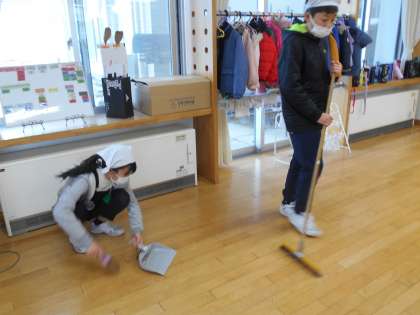 フレンドリー清掃では、6年生を中心に縦割で黙働清掃に取り組んでいます。