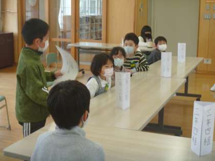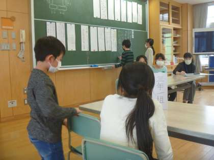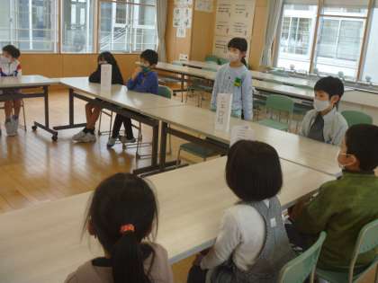 各クラスの代表は、視聴覚室でクラスで話合った内容を大きな声で発表することができました。とても立派でしたよ!
