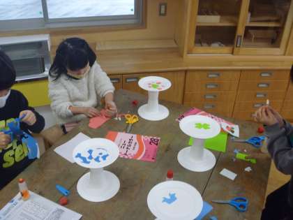 紙皿の丸い形を使って、ころころ転がり動きを楽しむ工作をしています。