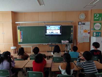 音楽の時間に、奥田中学校吹奏楽部の演奏を鑑賞しました。素晴らしい演奏に、最後には大きな拍手をしていました。「すごかった」「中学に行ったら吹奏楽部に入りたい」と興味をもっていました。