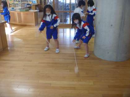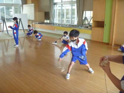 糸の巻き方やこまの投げ方のこつを友達に教えてもらいながら、楽しく活動しました。