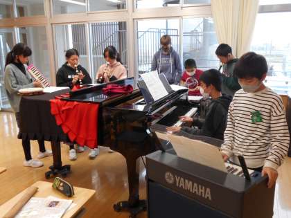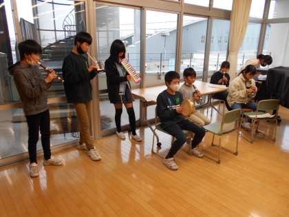 2学期にできなかった「風を切って」の合奏を聴き合いました。グループでどんな演奏にしたいかを話合い、練習してきました。まだ未完成のグループもありましたが、グループごとに工夫して演奏しました。