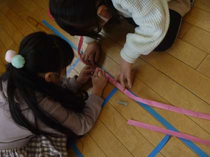 10センチごとに目盛りを書き入れた3メートルのテープものさしができ上がりました。
