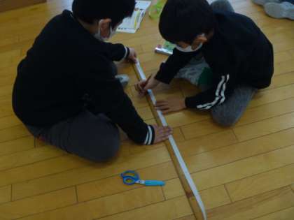 長い物の長さをもっと測りやすくするために、テープものさしを作りました。