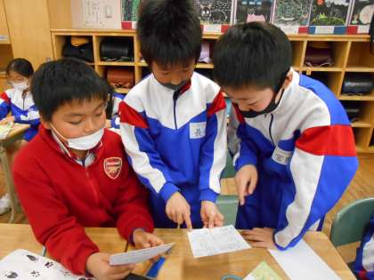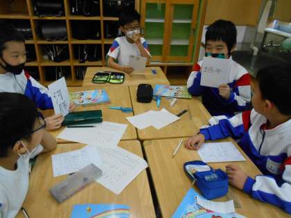漢字、シルエット、動物の足跡クイズの3つのグループに分かれてクイズを作りました。