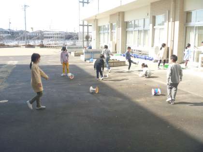 外は心地よい風が吹いていて、ころころ回るのを手助けしてくれました。友達と一緒に転がる動きを楽しんでいました。