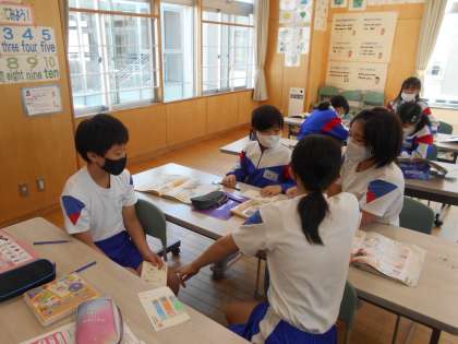 グループでインタビューし合っています。