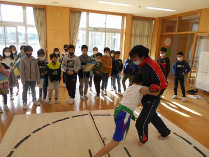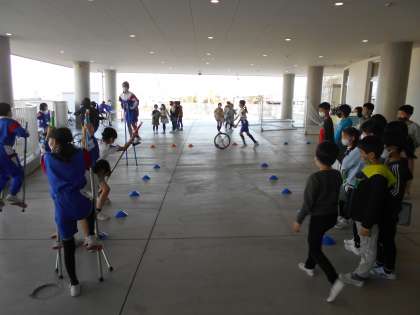 一生懸命に活動を行う上学年の姿を見て子供たちの表情はきらきら輝いていました。