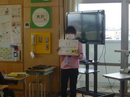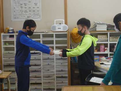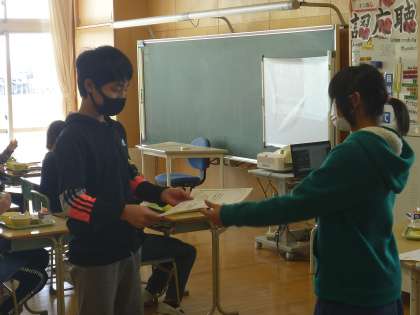 3位までにランクインした学級へは、担当の保健委員が訪問し、表彰式を行いました。