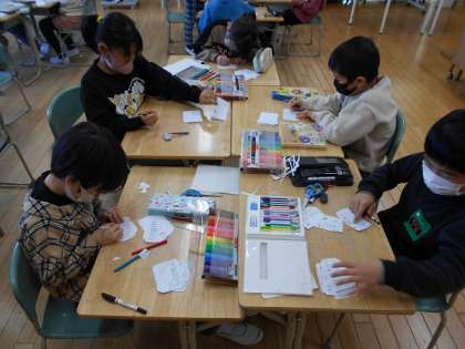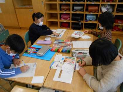 生活科の学習で、1年間の成長を振り返ってすごろく作りをしています。