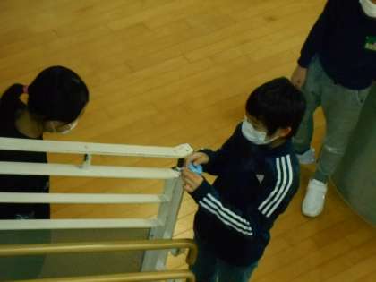 算数では、「円周率調べ」をしました。 学校内にある円を探して測定しました。