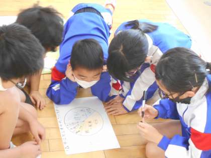 総合の授業では、「地球を守り隊」をテーマに、5つの環境問題について考える学習をしています。3学期は、これまでに調べたことを、どのように発信していこうか、各グループで試行錯誤しながら考えています。