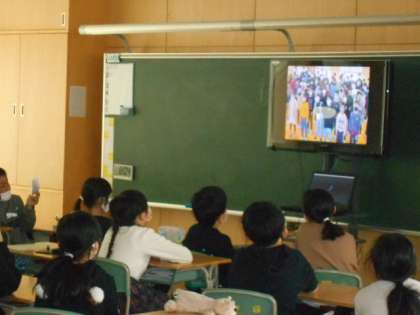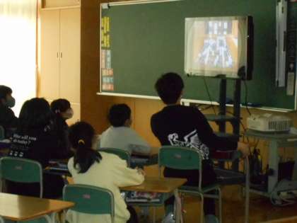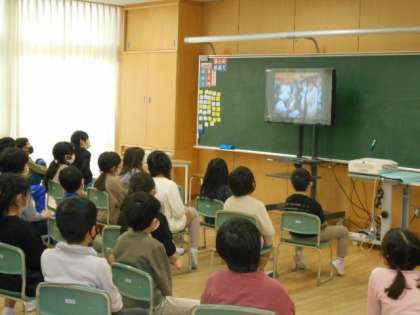 各教室で、事前に録画したビデオを視聴し、6年生の卒業を全校で御祝いしました。