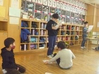 3年生はクラスごとに発表をお互いに見合って感想を言い合っています。
