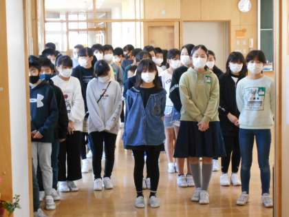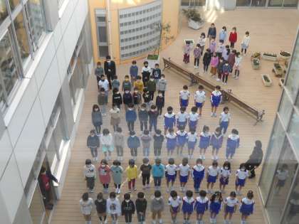 明日、卒業する6年生をお祝いしようと、1〜5年生から歌のプレゼントをしました。卒業式には参加しないので、「ありがとう」や「おめでとう」の気持ちを『大空をむかえる朝』の歌に込めました。6年生に届けたい思いで、朝活動の時間に中庭やプレイグラウンド、ベランダ等に広がって歌いました。天気にも恵まれ、さわやかな温かいひとときでした。6年生も笑顔で歌のプレゼントを受け取っていました。