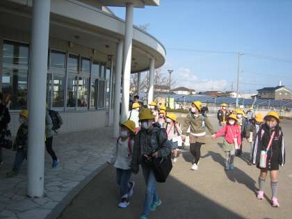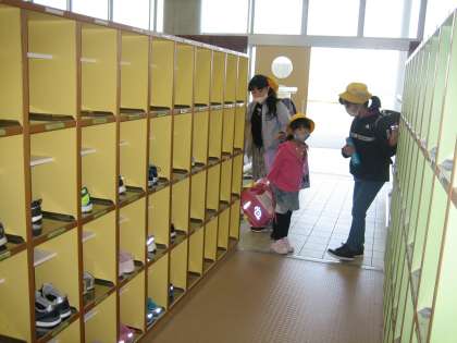 下足の場所や下足の入れ方を、お兄さんお姉さんたちに教えてもらいながら教室に入っていきました。