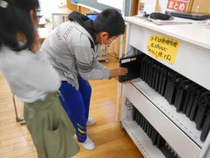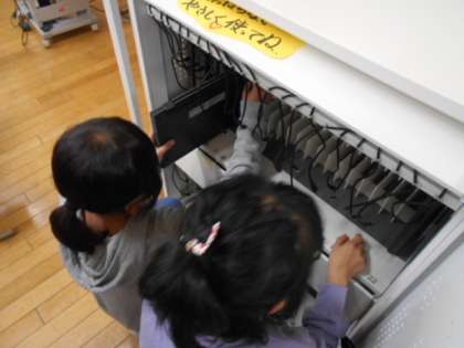4年生は、今日初めて一人一台端末制で用いるchrome bookを使ってみました。