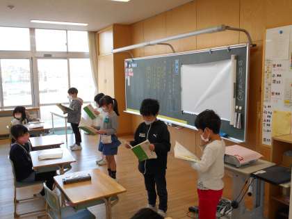 国語科では、グループごとに「ふきのとう」の音読をしました。登場人物になりきって発表する姿が見られました。