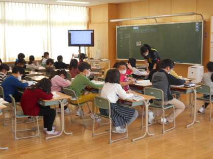 学習参観は、中止となりましたが、子供たちは今日も元気に登校。どの学級も真剣に学習に取り組んでいます