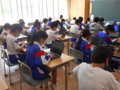 2組では、chromebookを用いてタイピング練習を行っていました。